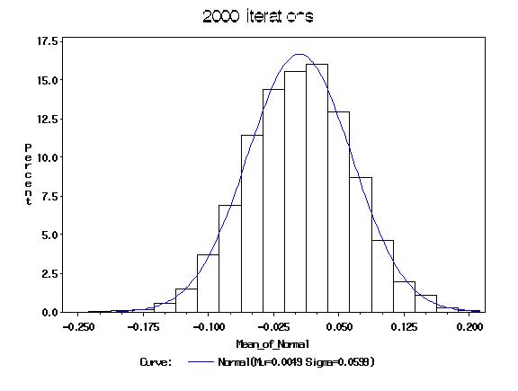 We will first look at an application of the bootstrap on a sample data set from the standard normal distribution. The data set consists of a random sample of n=300 values which was obtained the SAS function rannor(), which generates random numbers from the standard normal distribution.